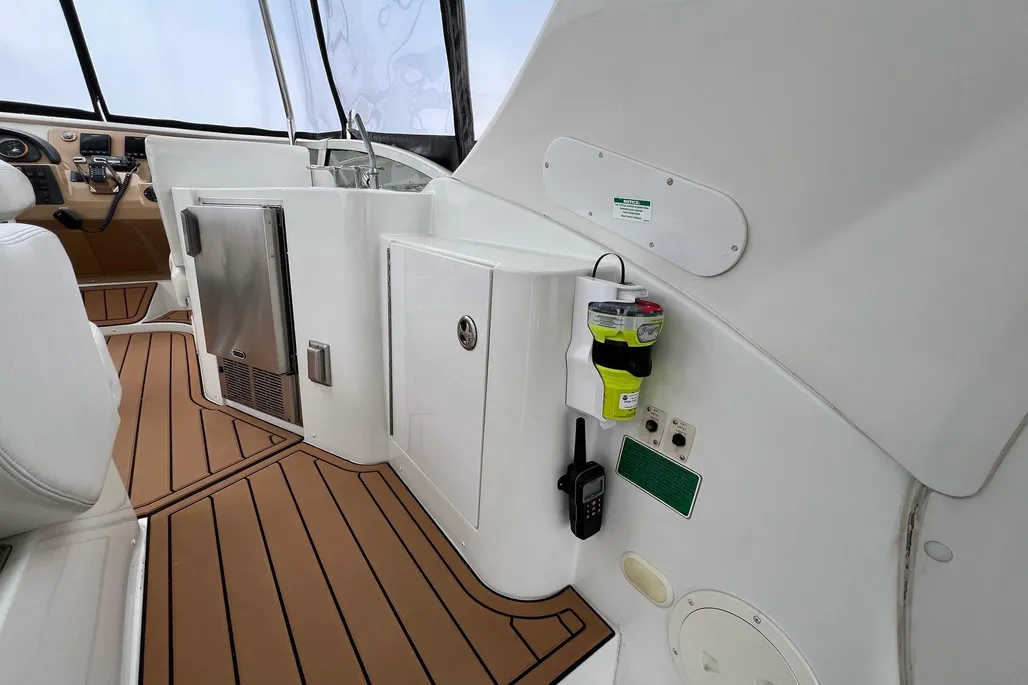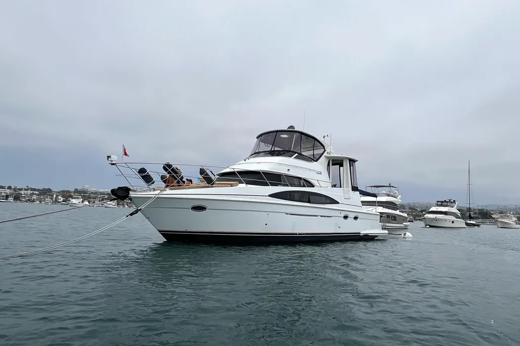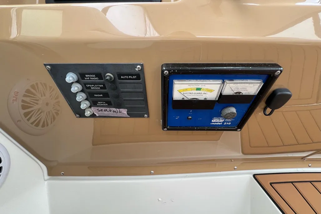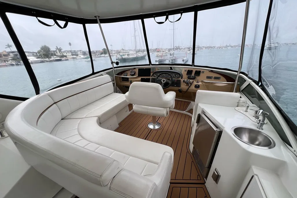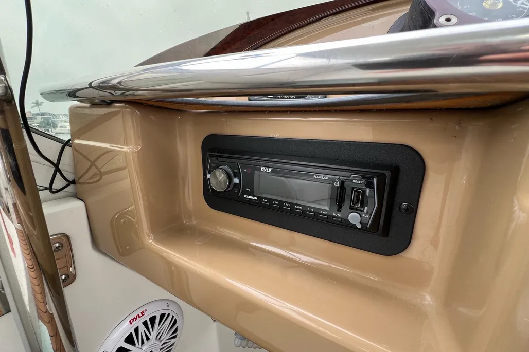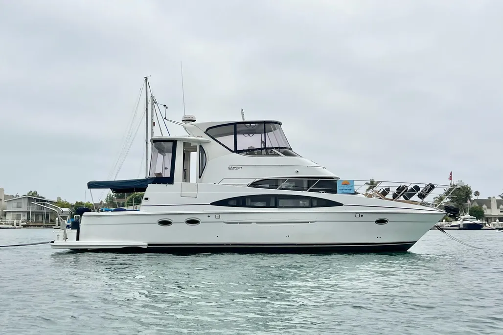 Owner, has spared no expense in upgrades on this 2003 Carver 444! New Raymarine electronics, including 2 Axiom+ chartplotters. New Isinglass throughout, new SeaDeck flooring on all 3 levels, new front bow pads with custom covers, new wrap around window shade, new built in icemaker, Bimini Top over cockpit area! , Also included is a custom Davit system with electric motor and much more!