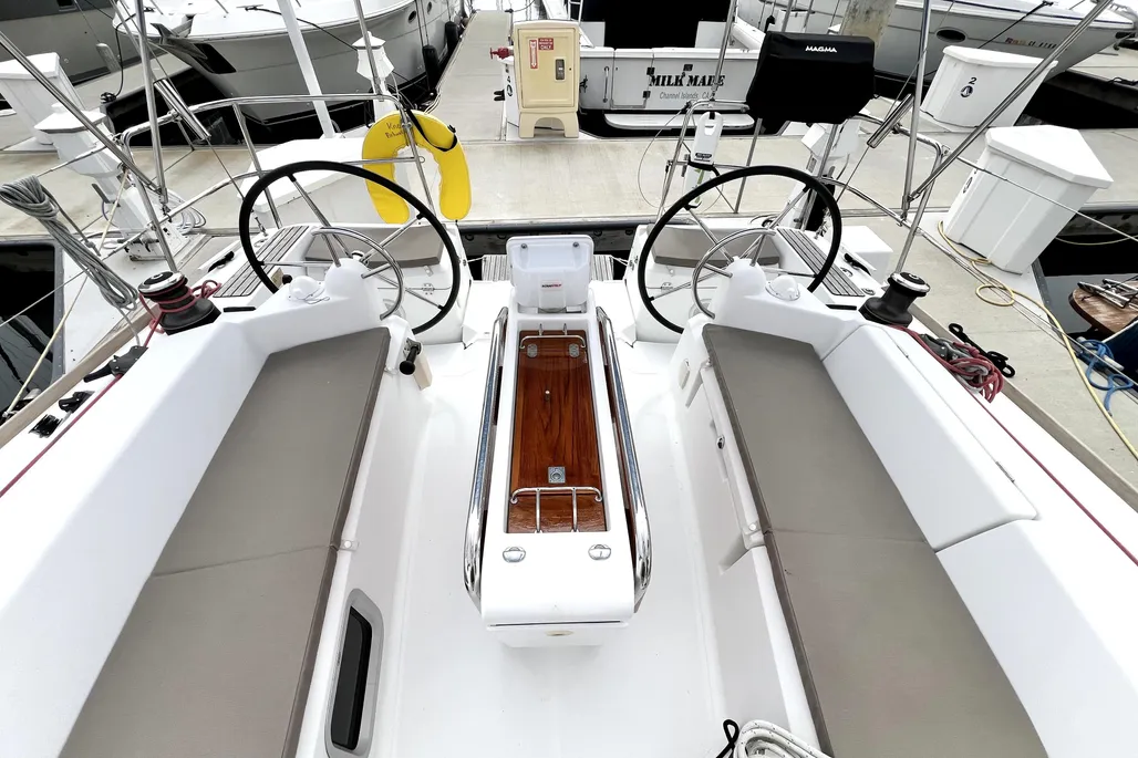 The Jeanneau Sun Odyssey 379 is Winner of the Boat of the Year Award for 2012 in two key categories, Best Mid-Sized Cruiser and Best Domestic Built Boat. This stylish family-sized cruiser features a fold-down transom for ease of access, twin helms, large cockpit, spacious interior with lots of storage and a performance oriented hull with hard chine giving it both speed and stability.  With main and genoa sheeting lead aft to each helm station, and many other innovations throughout, sailing the Jeanneau Sun Odyssey 379 is pure pleasure.  All scheduled maintenance recently completed and ready to start enjoying now.