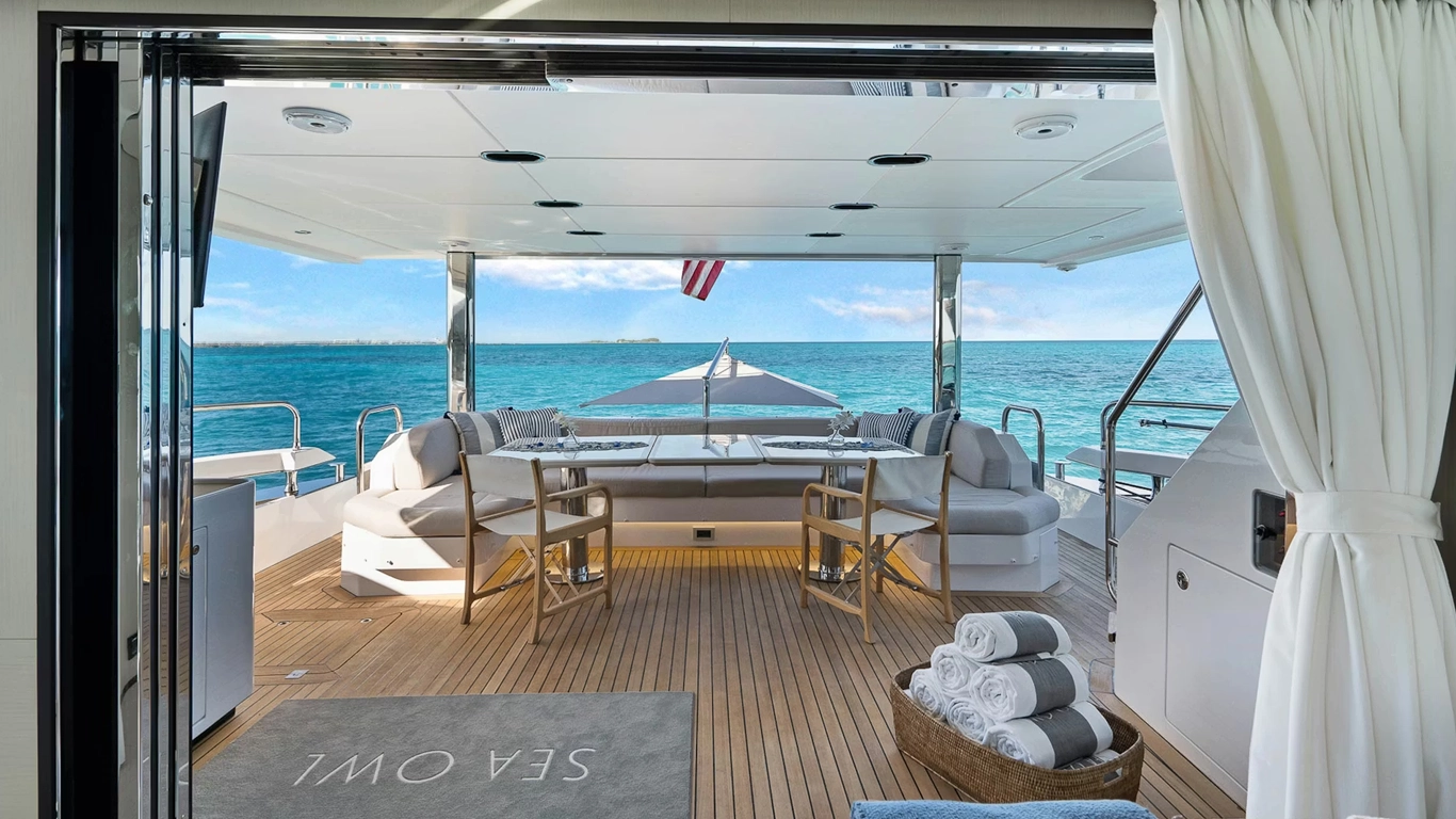 SEA OWL is a 26.82-meter Azimut Grande 27M that delivers contemporary styling and five-cabin flexibility in a very usable charter package. With stabilizers, Wi-Fi and a layout designed for comfortable coastal cruising, she is well suited to guests looking for a modern Italian motor yacht with broad appeal. SEA OWL is especially attractive for family charters and relaxed summer itineraries.