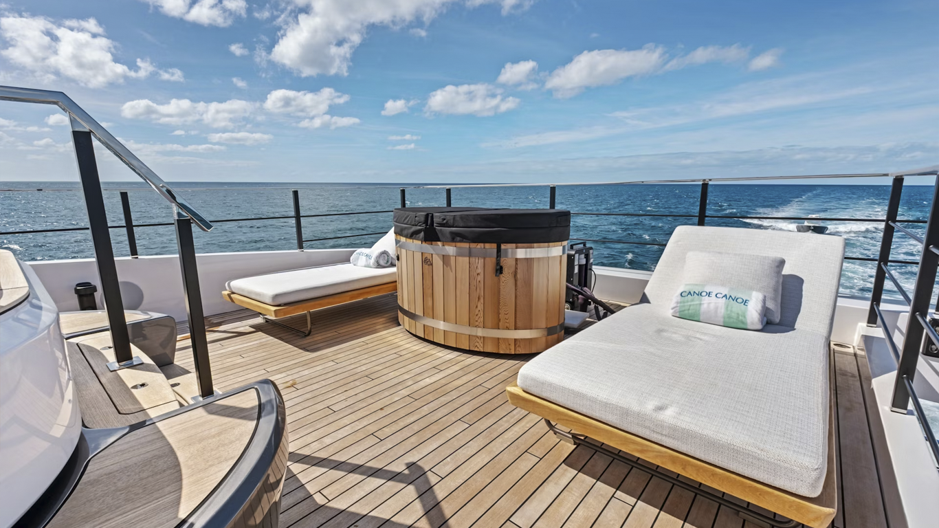 CANOE CANOE is a newly launched 42.67-meter Custom Line that blends contemporary design, generous interior volume and an easy luxury lifestyle. Built in 2025, she brings a new-yacht feel to charter, with five guest cabins and a versatile deck arrangement created for entertaining, wellness and relaxed time on the water. She is an excellent choice for stylish charters in warm-weather cruising grounds.